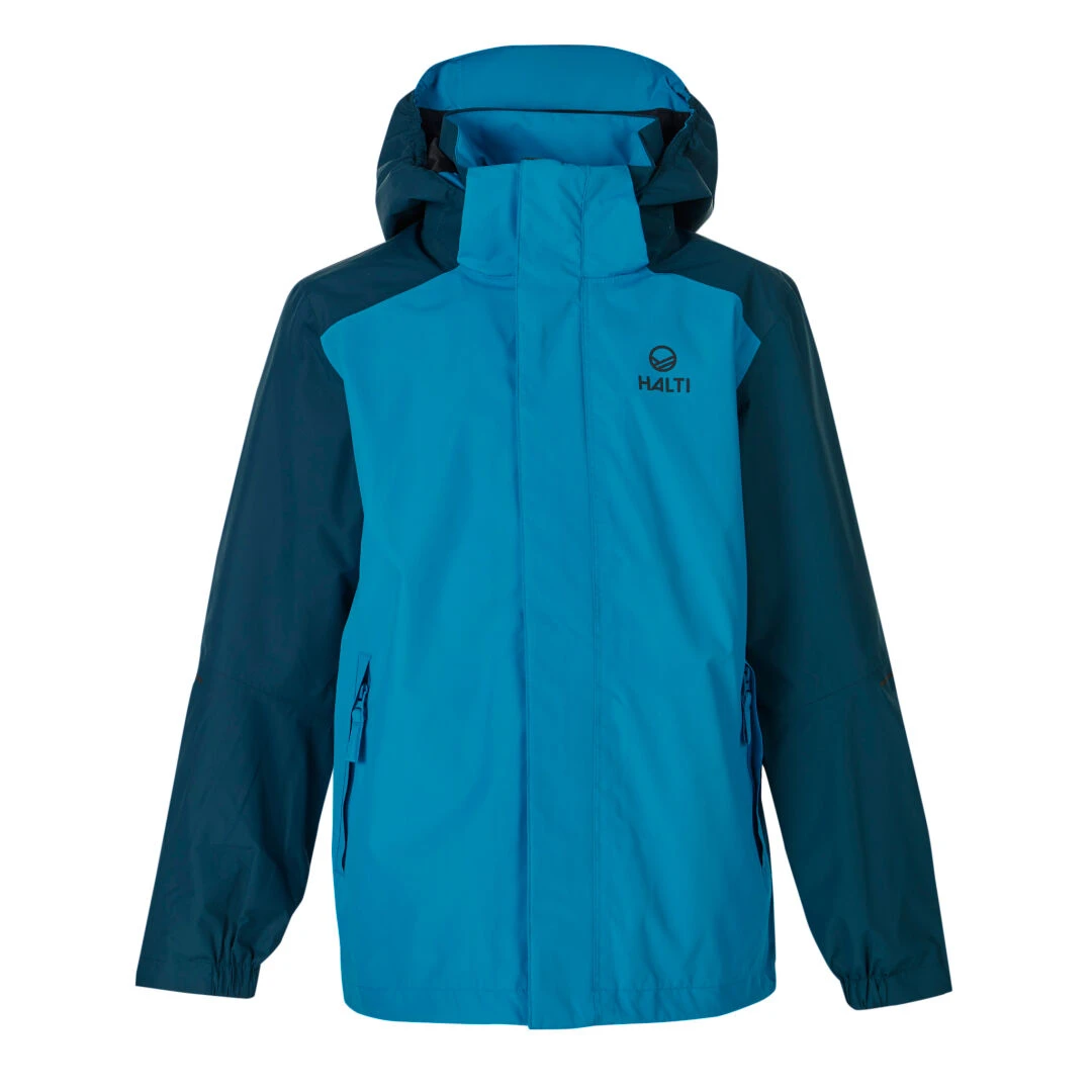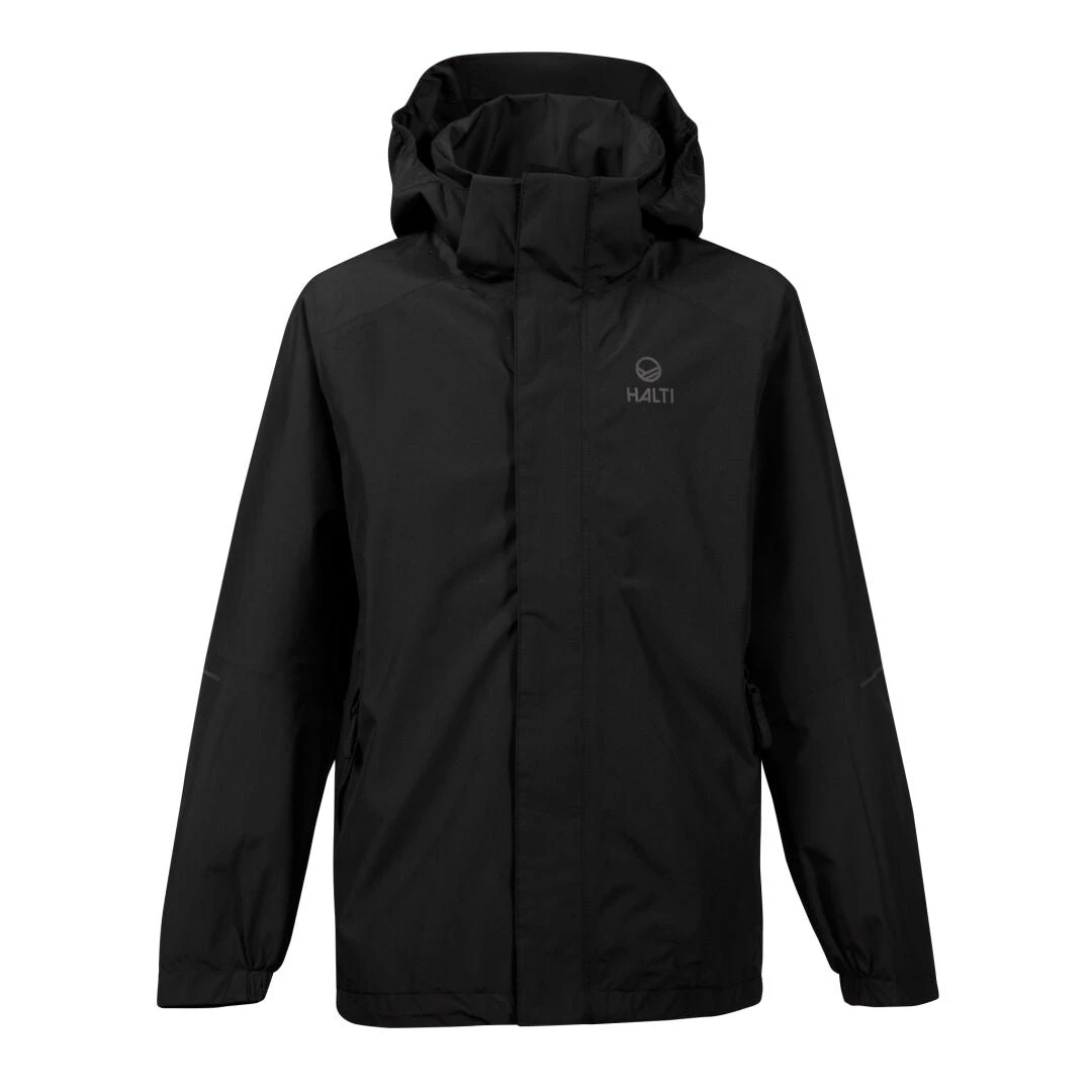 - Windproof, waterproof and breathable DrymaxX® material All seams taped Fixed hood with cord adjustment Zippered underarm ventilations Zippered hand pockets Adjustable hem Reflective details Halti’s ECO-product: This jacket has been made using recycled polyester and certified bluesign® approved materials, and it has a fully PFC-free water repellent treatment.