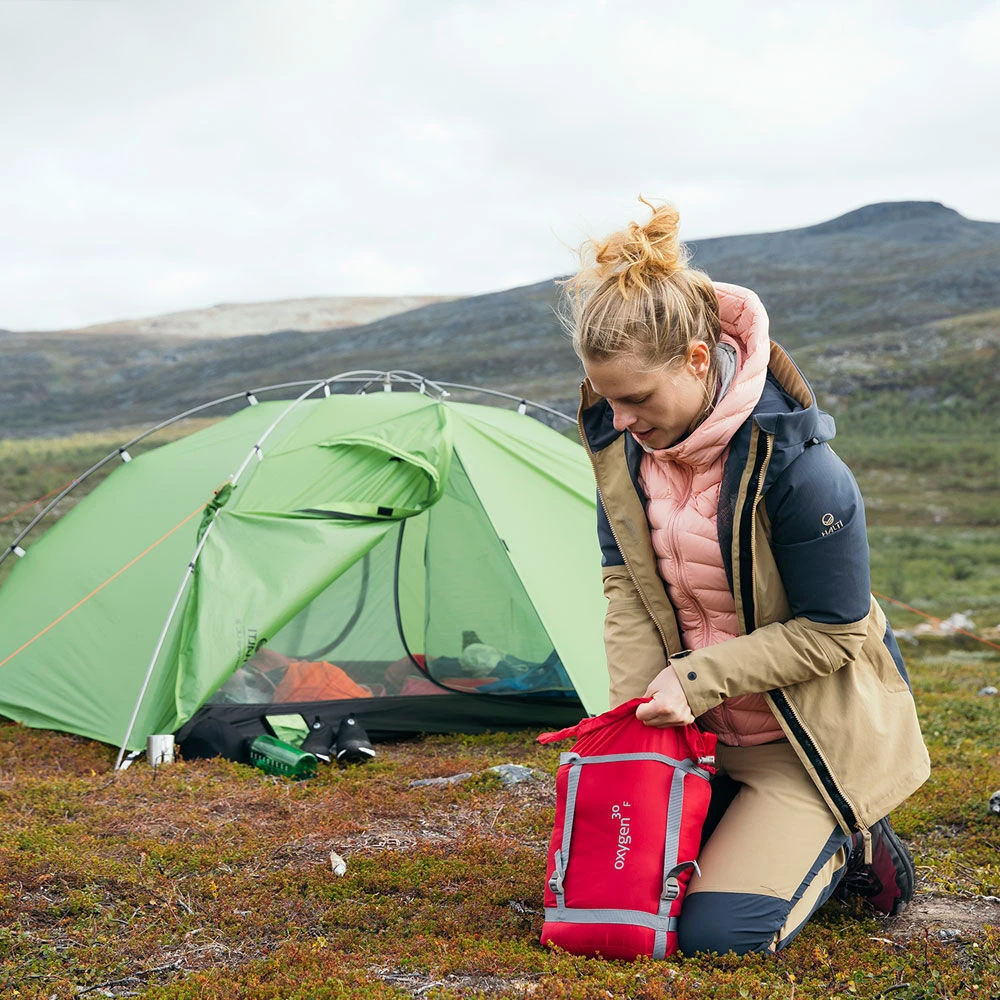Halti’s Huippu down jacket has now been made with fully recycled materials! This lightweight and warm women’s down jacket is multifunctional and perfect for year-round use. Huippu Re-down jacket has 100 % recycled outer fabric, which is windproof, water-resistant and durable. The jacket has recycled down, which is reclaimed from post-consumer down blankets and cushions. Huippu Re-down works as a stand-alone jacket and on colder days you can wear it as a warm mid-layer under your shell jacket. This lightweight and packable jacket is easy to take along on any trip. Also available in plus size for women.