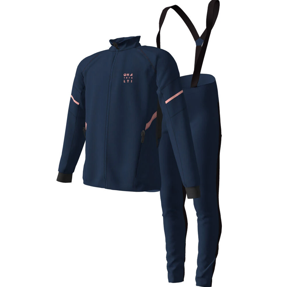This cross-country ski set has stretchable Stormwall® stretch material, which is windproof and water-repellent, yet highly breathable. The back side of the pants and jacket have stretchable and lightweight tricot knit fabric to maximize breathability. The interior is soft combed fleece material, which brings extra warmth and transfers moisture efficiently away from skin.
