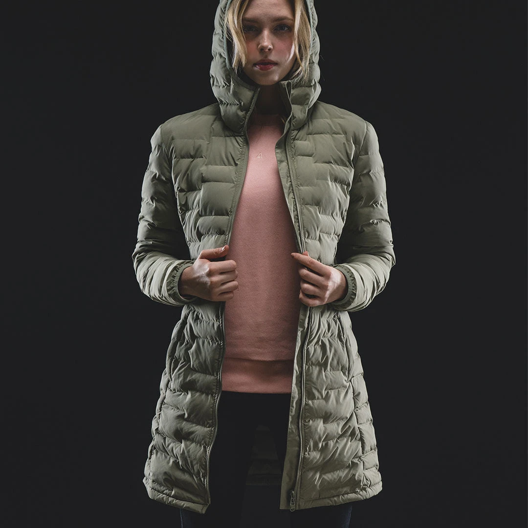 Women’s padded jacket with down-touch insulation. This thigh length jacket is excellent for everyday use on the cooling days of autumn and early winter.