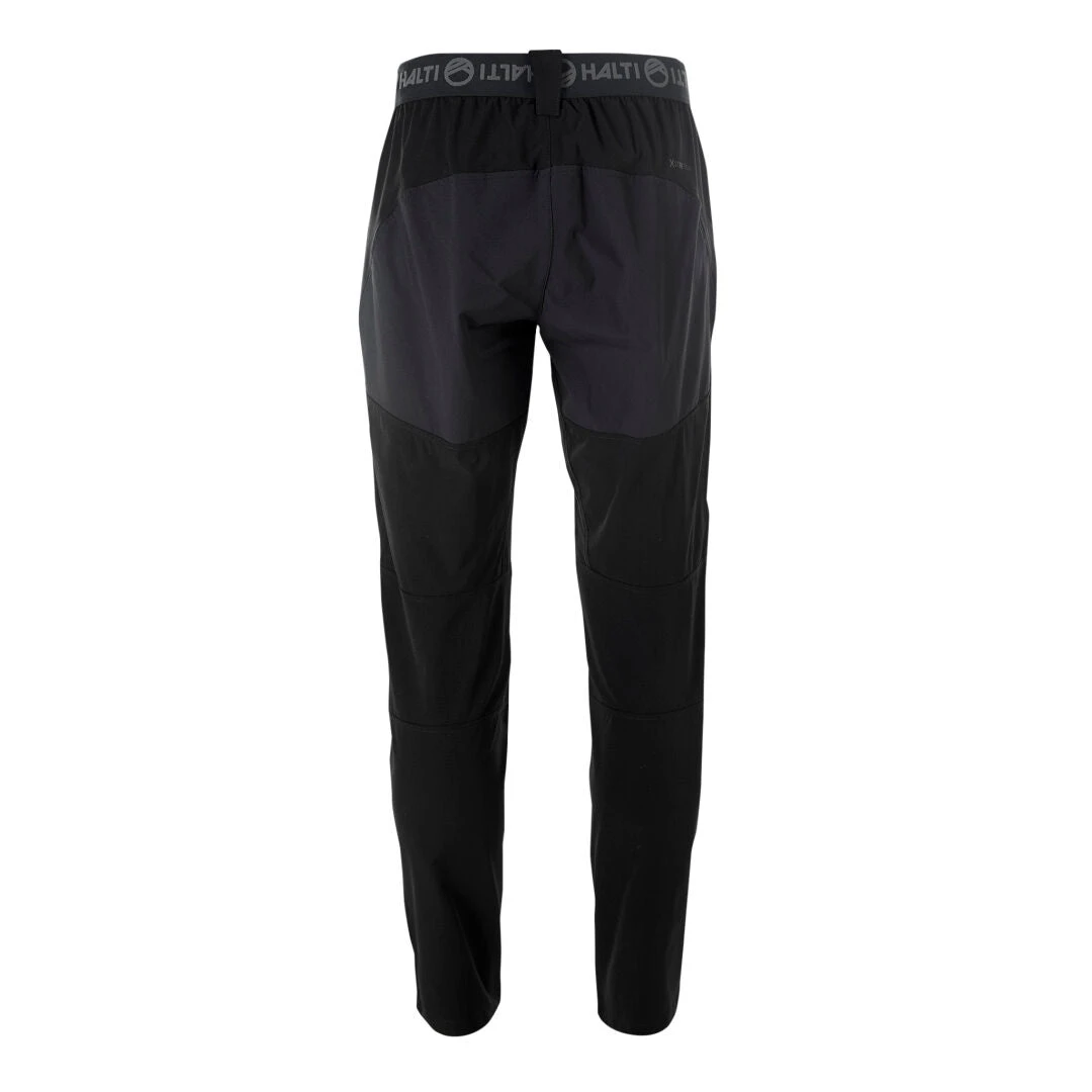 - Combination of two different stretchable and breathable materials Regular fit Shaped knee and a narrowing pant leg Elasticated waistband with cord adjustment and belt loops Zippered thigh pocket and hand pockets Reflective details Halti’s ECO-product: These pants have been made using recycled pre-consumer textile waste (20%) and certified bluesign® approved material.