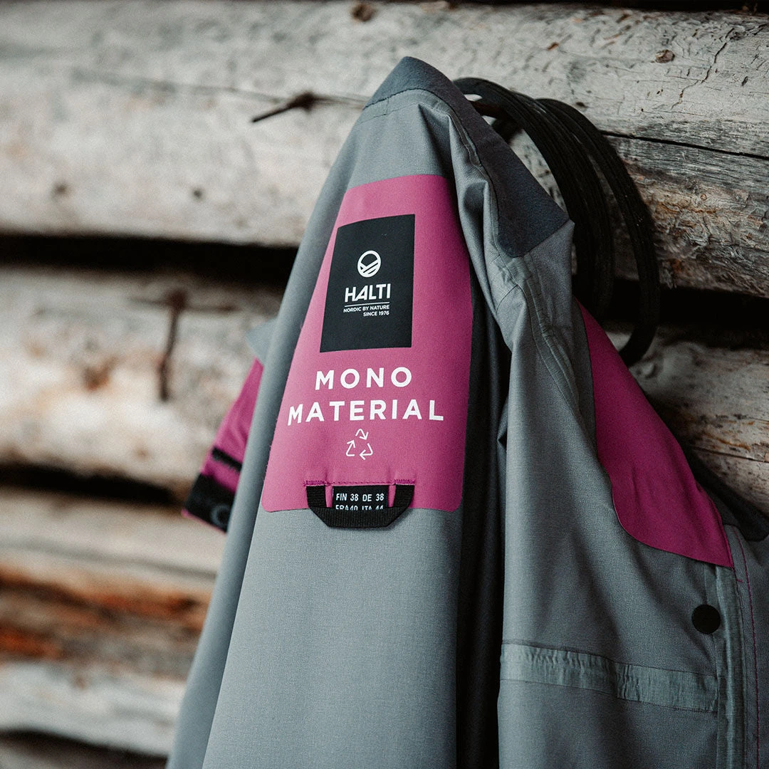 Our women’s Reissu jacket is a mono-material 3-layer jacket which offers protection for unpredictable weather in style. This jacket is designed for those wanting to live an active lifestyle and find multipurpose options that are made in a sustainable way. This jacket is a stylish, longer shell jacket made from PFC-free, waterproof, breathable 3-layer laminated, recycled polyester. This material is easy to recycle. All parts, except the zipper sled, are made from the same material. The fit of this jacket is great, and it provides protection in all weather conditions.