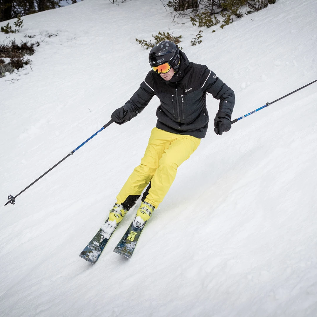 This jacket has breathable, fully wind- and waterproof DrymaxX® Ultimate material, which is made from 50 % recycled polyester. The 4-way stretchable material conforms to all your movements on the slopes. The jacket has a lightweight and warm synthetic insulation, similar to down.